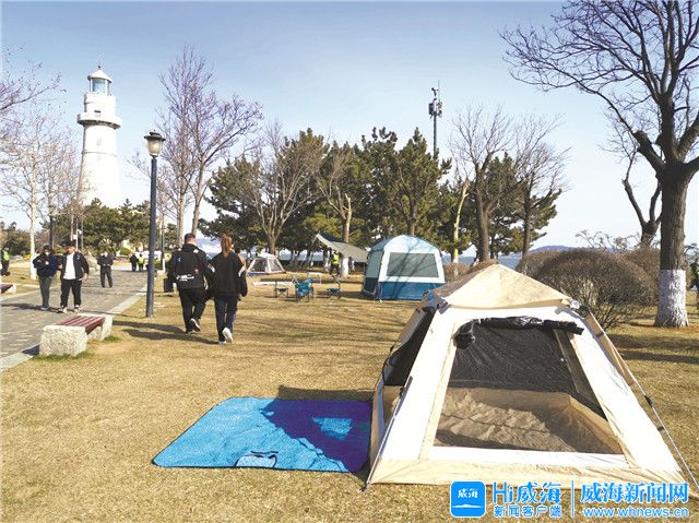 13日上午,在悅海公園燈塔廣場東側的綠地上,大大小小的帳篷散落開來,春游的氛圍感頓時撲面而來。在帳篷下小坐,抬頭便是地標建筑燈塔,回頭則是美不勝收的海景,這樣的舒適愜意令人全身心放松。