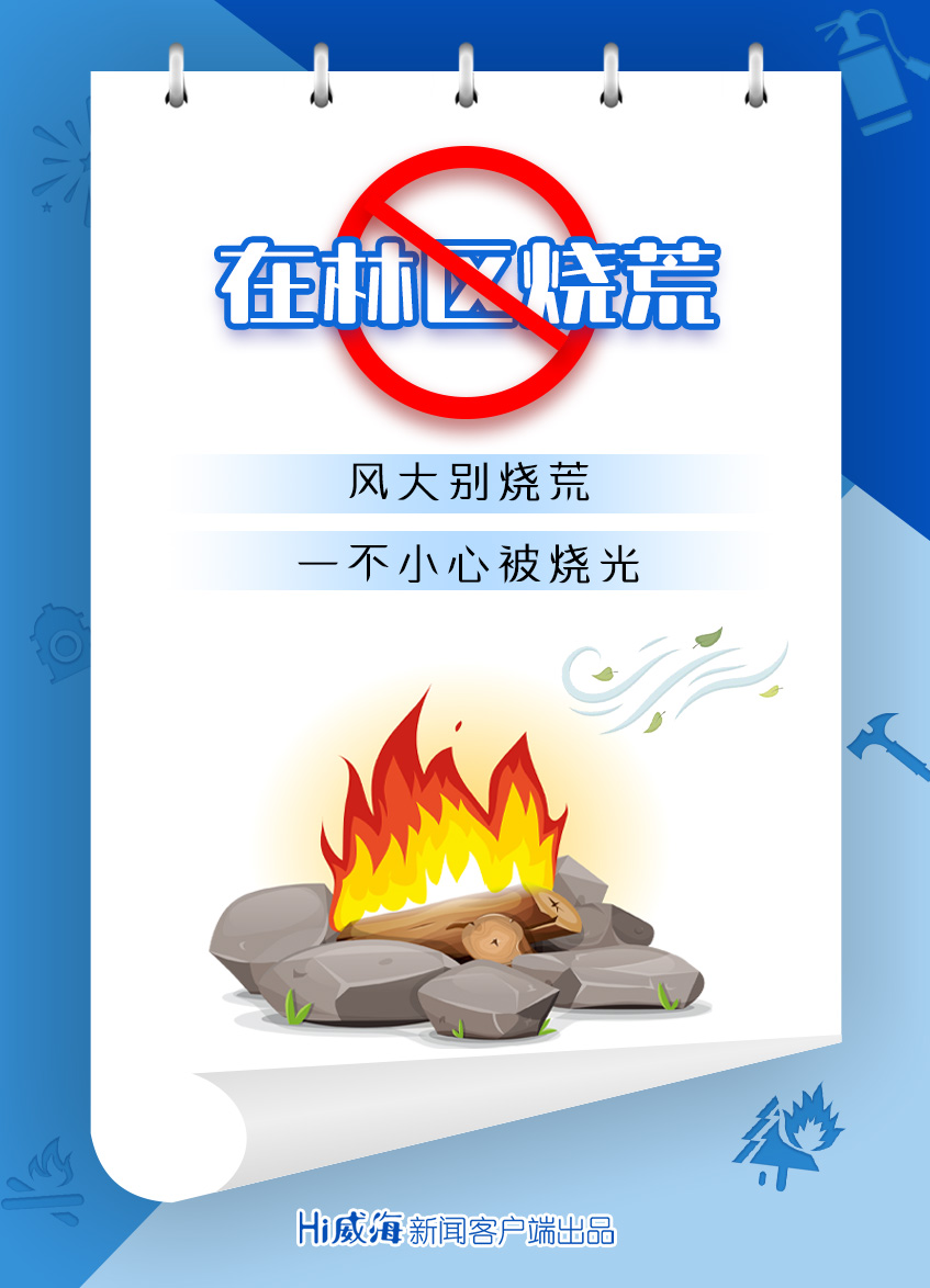 ??????每年11月1日至次年5月31日,為威海市林區(qū)野外用火禁火時間,在此時間內,威海市所轄行政區(qū)域森林內及距森林邊緣500米范圍內(正常住戶限居住區(qū)之外),均為禁火區(qū)域。