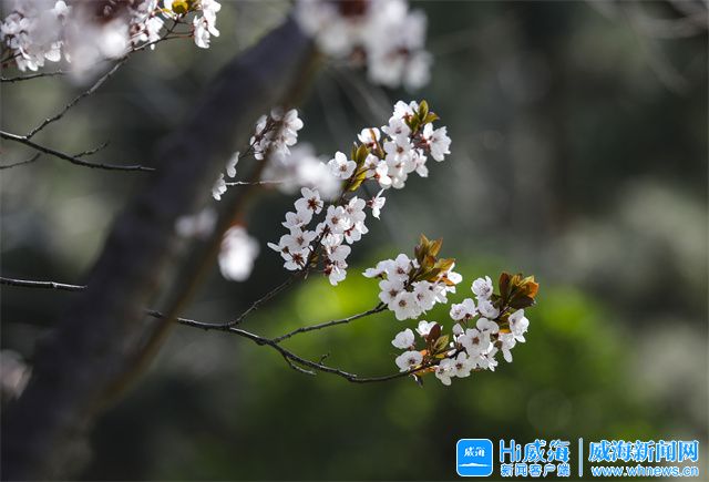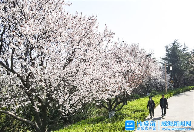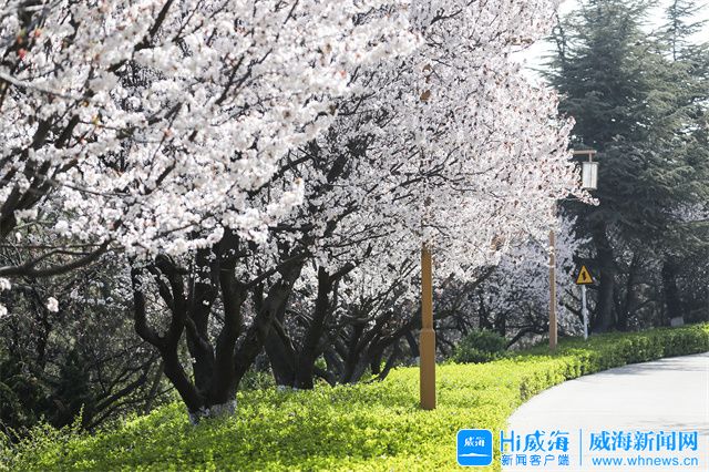 ???? 在環翠樓公園,一株株杏樹花應時綻放,競相綻放的杏花潔白似雪,在春風中一爭芳菲。
