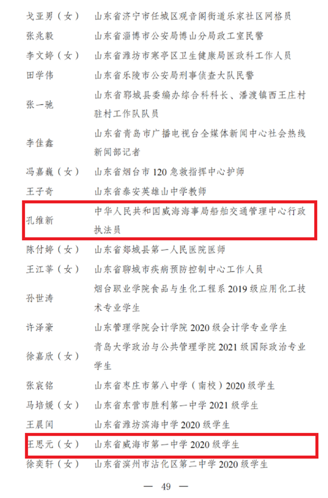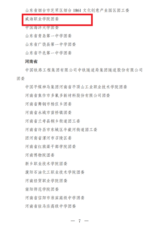 ??????2023年是全面貫徹落實黨的二十大精神的開局之年。近日,共青團中央作出表彰決定,授予296個團組織全國五四紅旗團委稱號,威海職業學院團委獲此殊榮;授予389個團組織全國五四紅旗團支部稱號,山東省威海市威達集團有限公司團支部獲此殊榮;授予481名同志(含追授1名)全國優秀共青團員稱號,威海第一中學學生王思元、中華人民共和國威海海事局船舶交通管理中心行政執法員孔維新獲此殊榮;授予342名同志全國優秀共青團干部稱號,共青團威海市委學校少先隊工作部部長李淼獲此殊榮。