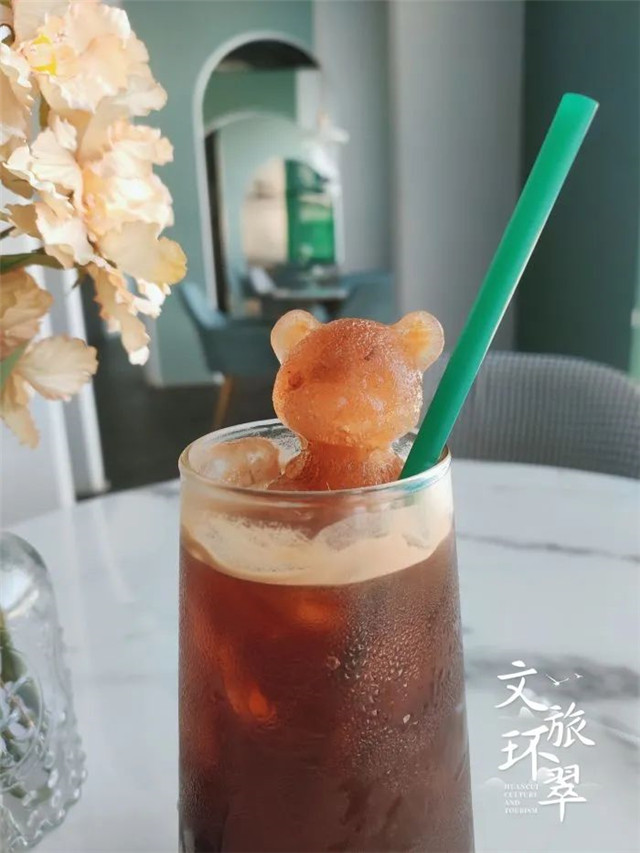 ??????棕色的小熊躺在清爽的冰美式里,一改冰美式在人心中的刻板印象,充滿童趣,氛圍感十足。