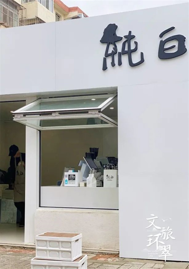 ??????一間咖啡屋在綠樹的掩映下靜靜佇立,純白、原木,門店方方、小窗方方像一塊溫柔的奶油小方誘人靠近。