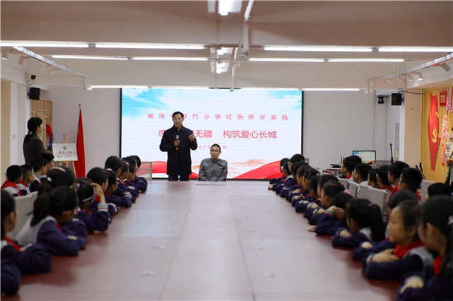 ????當日上午9時30分左右,翠竹小學副校長江彩娥帶領88名師生來到位于青島北路附近的威?!跋M摇保驇熒f明當天研學目的的同時,還介紹了大本營總體概況。