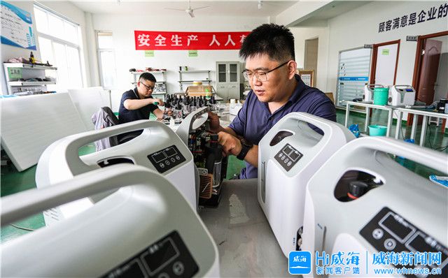 ??????在威海高科醫(yī)療設(shè)備有限公司車間內(nèi),工人正在組裝耳鼻喉冷敷儀。Hi威海客戶端記者 孫大偉/攝