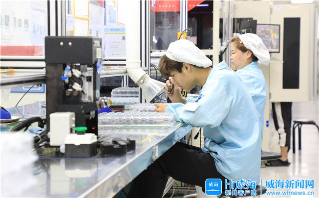 ??????在愛思特傳感技術(shù)有限公司生產(chǎn)車間內(nèi),工人正在生產(chǎn)組裝超聲波傳感器。Hi威海客戶端記者 謝菁/攝