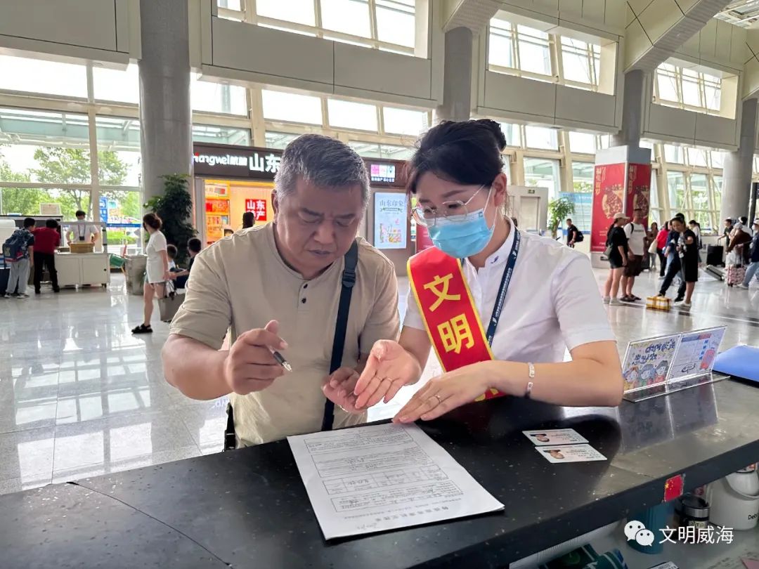 這樣的場景,不只出現在中心城區(qū)——文登區(qū)在大水泊國際機場開展“文明旅游我先行,你有困難我?guī)湍敝驹阜栈顒?,在機場大廳及出站口為游客介紹旅游景點、搬運行李,為游客拍照并維持車輛秩序,讓全國各地的來威游客都能感受到家的感覺;榮成市組織開展以“‘一城仁愛風’志愿助旅”為主題的文明旅游宣導志愿服務活動,在那香海等熱門景區(qū)景點,通過提供秩序維護、文明停車、道路指引等服務,獲得廣大游客好評;乳山市組織志愿者在火車站、汽車站、交通場站幫助游客購票取票、照看提拿行李、提供乘車咨詢、維護上車秩序、協(xié)助游客拍照……