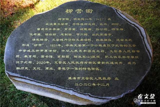沿著蜿蜒的步道,走到長街盡頭,細心的人們會發現一塊街志,上面記載著,中共文登第一個小組在此建立。
