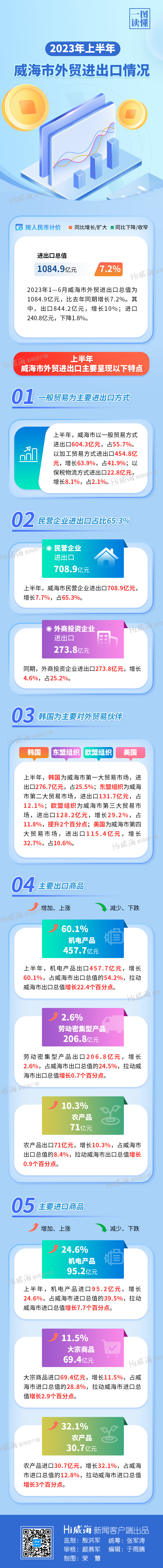一圖讀懂丨同期增長(zhǎng)7.2%,2023年上半年威海市外貿(mào)進(jìn)出口情況出爐
