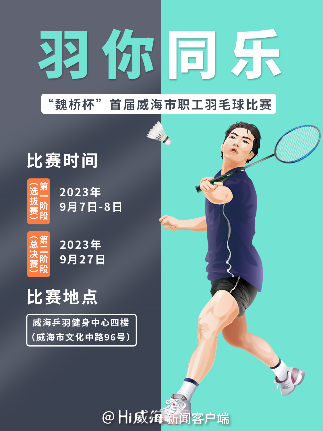 9月,“魏橋杯”首屆威海市職工羽毛球比賽將正式開(kāi)賽,目前進(jìn)入報(bào)名選拔階段,現(xiàn)為大家送上最新、最全、最強(qiáng)報(bào)名攻略,各位羽毛球發(fā)燒友趕快準(zhǔn)備起來(lái)吧!