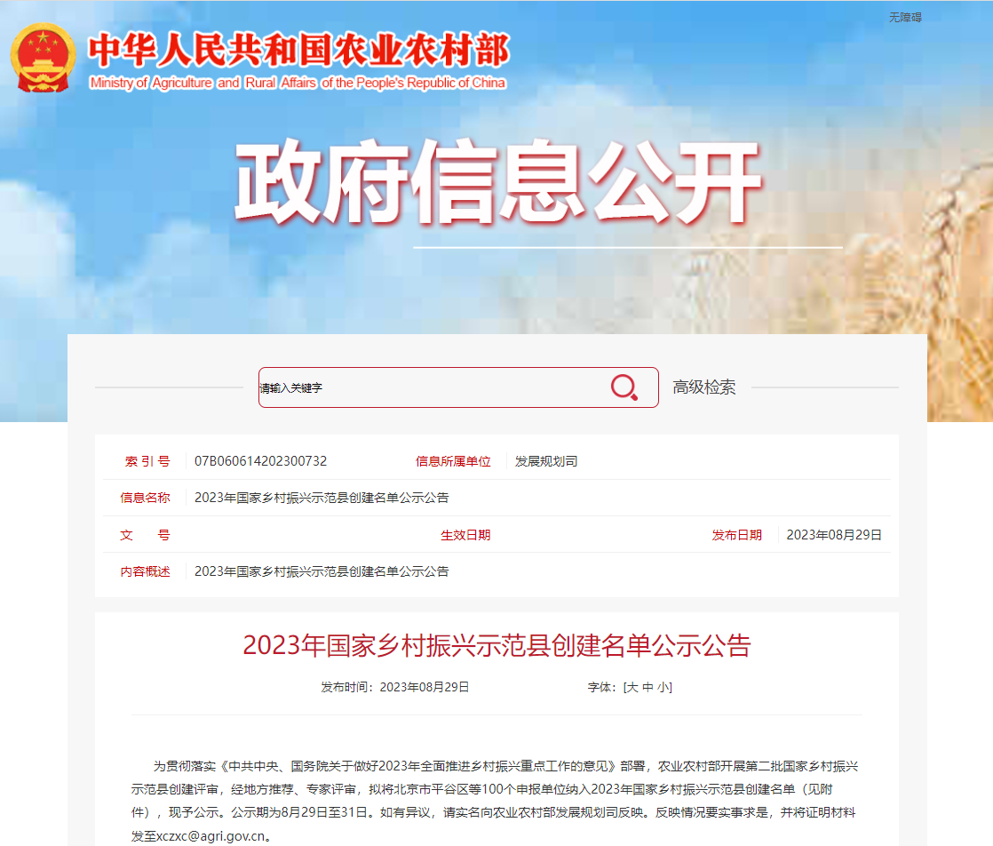 ??????2023年國(guó)家鄉(xiāng)村振興示范縣創(chuàng)建名單