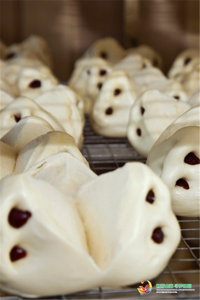 和面、揉面、分面坯、塑形、醒發、上鍋,封閉的車間里,手工匠人們正在飛揚的面粉中進行著最天馬行空的“藝術”創作。