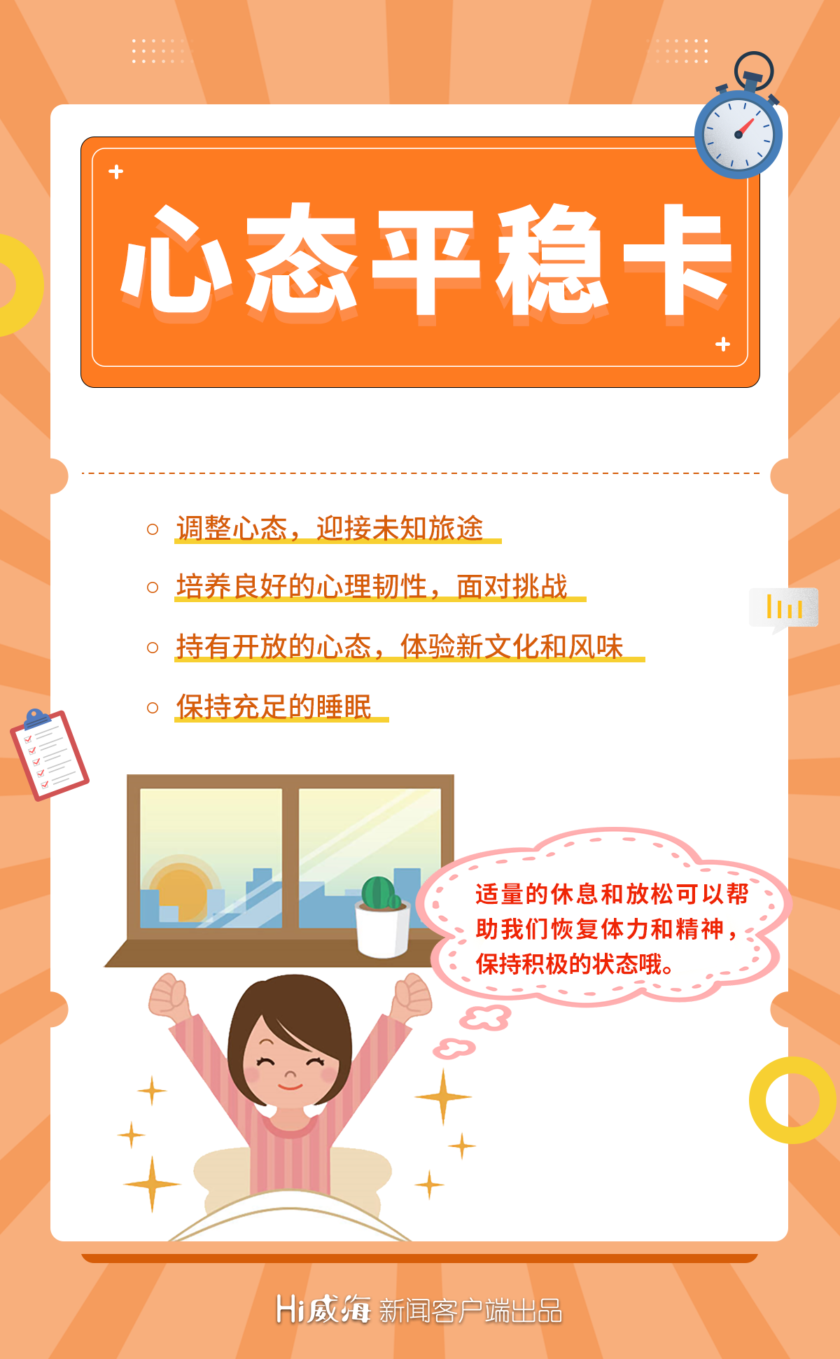 當(dāng)國慶遇上了中秋,又到了我們期待已久的假期時刻,想必小伙伴們有“一籮筐”想要去旅游打卡的城市、地點。出發(fā)在即,揣好這5張出行提醒小卡片,“助”你旅途愉快,開心過“雙節(jié)”!