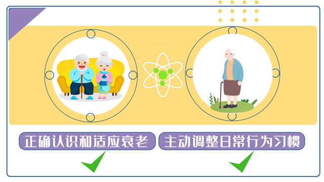 1.正確認(rèn)識(shí)和適應(yīng)衰老,主動(dòng)調(diào)整日常行為習(xí)慣。