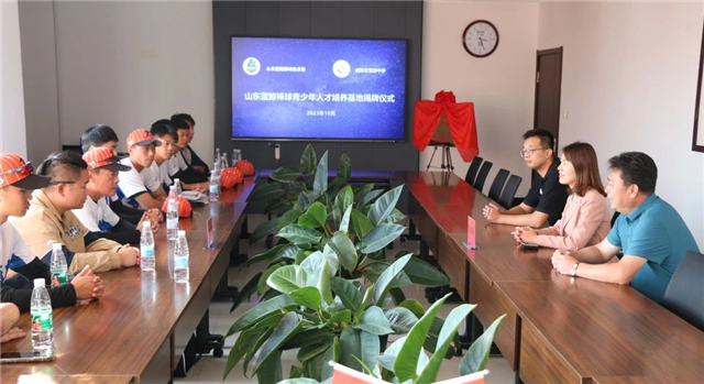 近年來,威海四中棒壘球項目發展迅速,其中男子棒球隊和女子壘球隊在各級別比賽中摘金奪銀、成績喜人,為高校和職業俱樂部輸送大量優質人才。山東藍鯨棒球俱樂部代表來威海四中參觀交流,旨在進一步加強雙方在青少年人才培養、教練員培訓、青少年賽事組織等方面的合作交流。座談會上,雙方代表共同為“山東藍鯨棒球青少年人才培養基地”揭牌并達成體教融合合作協議。