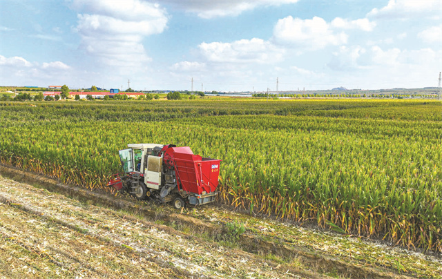 玉米機收現場。