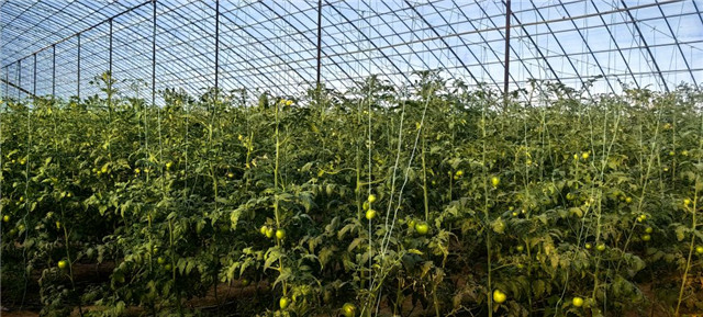 ??????2023年10月10日,山東省東營市廣饒縣高港村的大棚里,西紅柿長勢喜人。新華社記者 陳國峰 攝