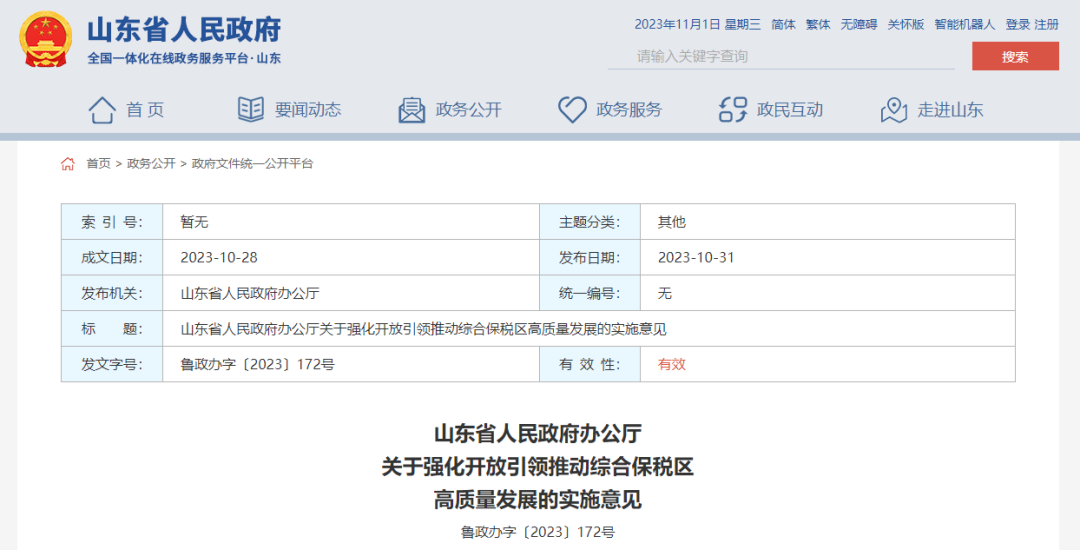 ??????10月31日,《山東省人民政府辦公廳關于強化開放引領推動綜合保稅區(qū)高質量發(fā)展的實施意見》(以下簡稱《實施意見》)對外發(fā)布,就新形勢下推動綜合保稅區(qū)高質量發(fā)展,《實施意見》明確了總體要求、重點任務和保障措施。《實施意見》中多次提及威海→