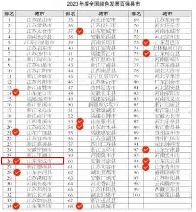 ??????2023年度全國綠色發(fā)展百強縣市榜單中,山東共有14地入選,其中威海榮成市上榜。