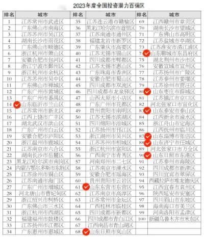 ??????2023年度全國投資潛力百強區(qū)榜單中,山東共有9地入選。