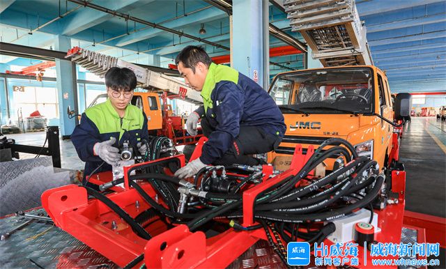 在威海高麗亞專用車制造生產(chǎn)車間,工人們正在調(diào)試產(chǎn)品。
