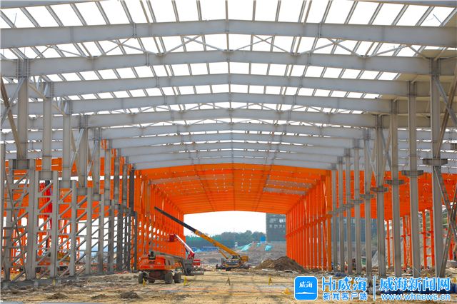 ??????12月17日,山東電工電氣海纜基地項目建設現場,車間及研發區域已具雛形。預計年底前,這個今年新簽約的單體投資過20億元項目將全部完工。