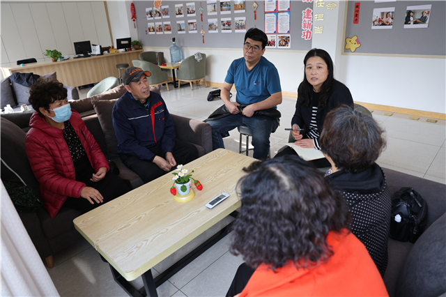 ??????環翠區環翠樓街道海城社區“小巷管家”們正在開會,討論協商社區樓道自治的相關事宜。
