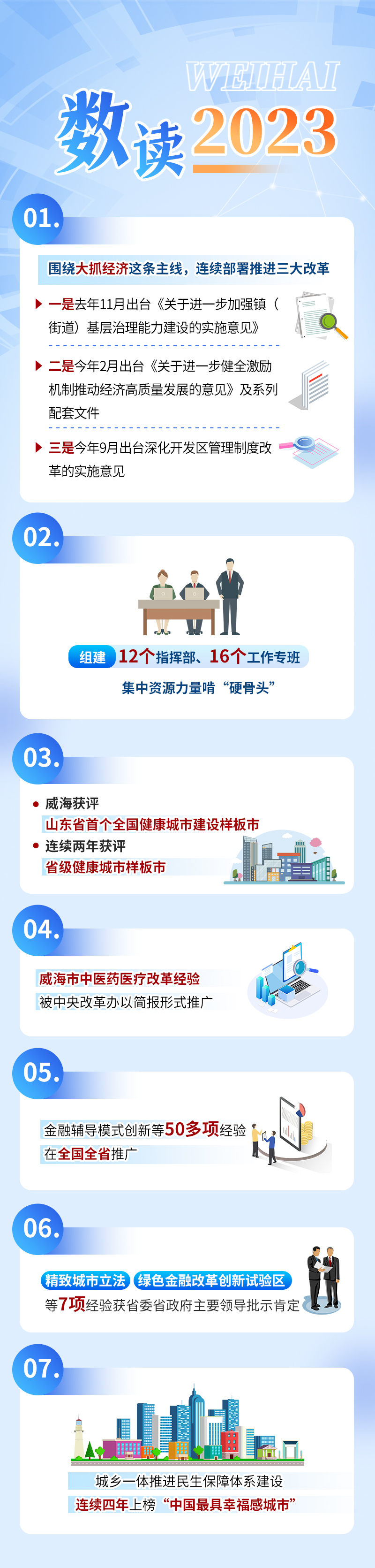??????日前,威海獲評山東省首個全國健康城市建設樣板市,連續兩年獲評省級健康城市樣板市;威海市中醫藥醫療改革經驗被中央改革辦以簡報形式推廣。這是全市一系列大刀闊斧改革的典型代表,也是以改革推動高質量發展、實現高效能治理的生動范例。