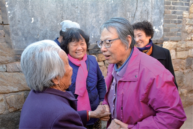 2019年4月3日,司曉星(右二)和其他乳兒回乳山看望乳娘(左一)王奎敏(孔俊娟攝)