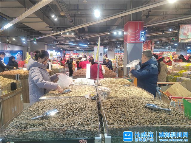 ??????這家干果店店員說,臨近春節,基本家家戶戶都要準備些干果,店鋪里除了開心果、松子等傳統干果銷量見長,一些相關的休閑小零食也賣得很不錯。(Hi威海客戶端記者 周穎 文/圖)
