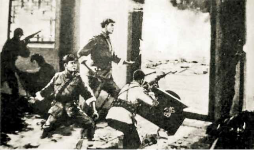 ??????我軍在廟內的干部戰士共20余名。大家不分男女老少,個個都是正式的戰斗員,只要有槍在手便主動利用地形選擇射擊目標,隨時打擊來犯之敵。在西側南倒廳堅持戰斗的有孫端夫、司紹基、阮志剛、我、趙野民、張修煜、陳光榮、黃在、夏來、李今輝。李啟明開始也在南倒廳,后來到后花園與宋澄、張玉華在一起。大家同仇敵愾,相互協作,據險固守,形成密集的火力交叉網,打退了敵人一次次沖鋒。敵人沖進院內的企圖,始終未能得逞。