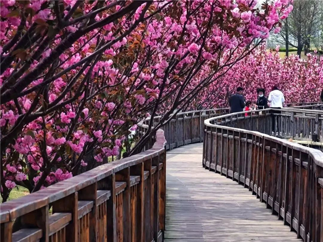 桃花、芝櫻等各類春花競相綻放