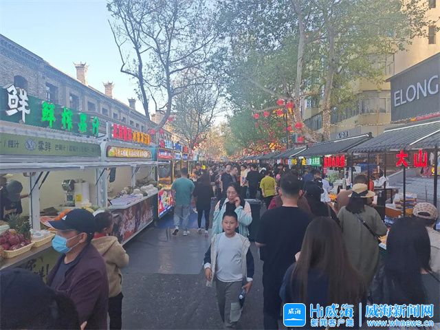 ????除了美食,假期期間夜市還舉辦了豐富的文化活動(dòng)。環(huán)翠樓街道在夜市南北兩側(cè)入口安排了威海大鼓、華服巡游等精彩演出,為游客帶來別樣的夜游體驗(yàn)。