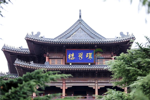 漫步于環翠樓公園內,樹木蔥郁,枝葉繁茂,一座座亭臺樓閣隱于其間,檐角高高翹起,騎鳳仙人靜靜佇立。