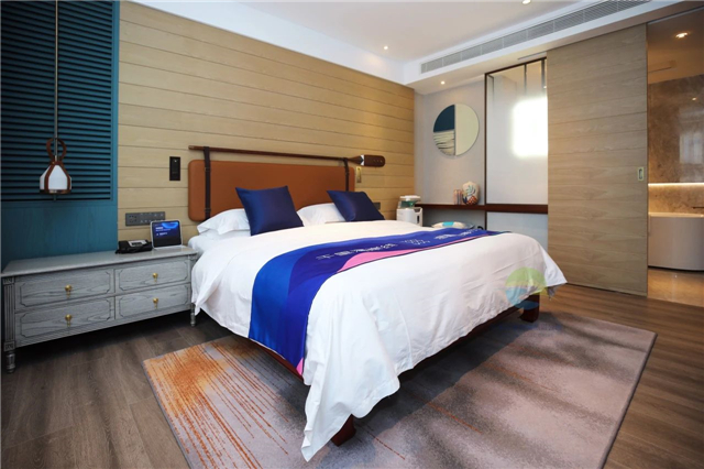 主打木質裝修的家居風格為客房增添了一份家的溫暖,拉開窗簾后,映入眼簾的是潮起潮落的湛藍風光,仿佛坐進了漂洋于海面的游船,平靜亦遼闊。