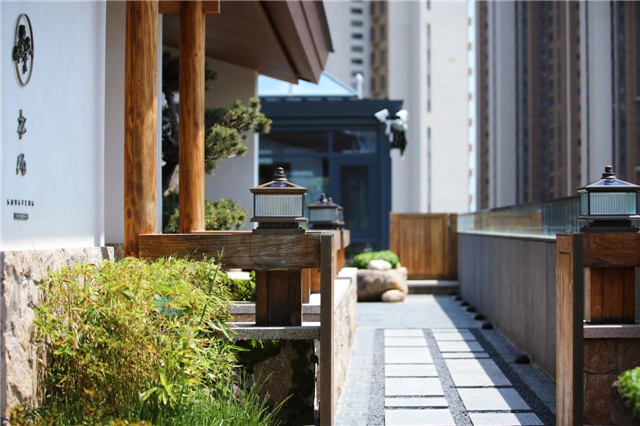 踏上抱海大酒店頂樓“登瀛臺”,行數步,至天臺處,豁然開朗,名為“松風”“竹語”“梧月”的包間并列,古樸典雅,漫步其間,如在詩畫中。
