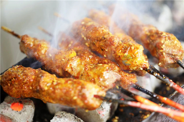烤好的肉串肥瘦相間,筋膜相連,晶瑩剔透,一口咬下去,牙齒瞬間點燃肉的的肌理,口腔里綻放起肉汁的煙花,一朵接著一朵,欲罷不能,根本停不下來。