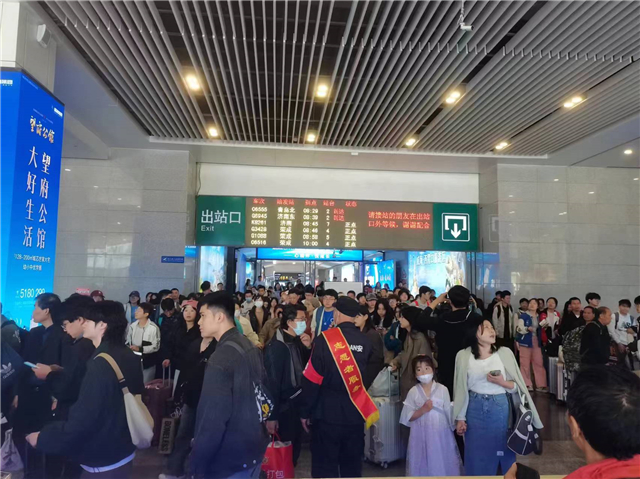 5月5日,在威海站,一趟趟列車準時出發、到達。威海交通場站公司客運中心主任于國賓介紹,“五一”假期,我市鐵路運輸迎來又一個高峰,威海站、威海北站兩站每日客流量在7萬人次以上,是平日客流的兩倍。