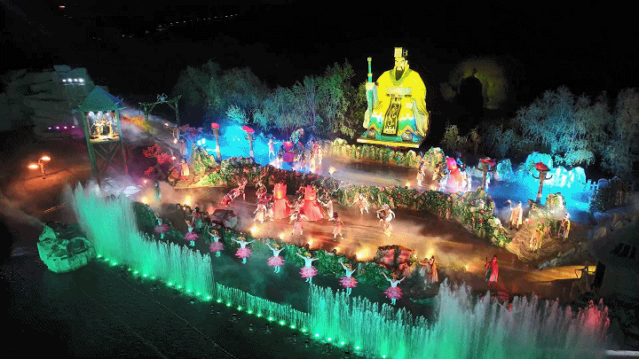 《神游傳奇》秀是華夏集團投資5億元攜手中國頂尖創作團隊聯袂打造的實景演藝巨制,擁有世界首創360度行走旋轉式巨輪觀賞席,快來感受一場動人心魄的視覺盛宴吧。