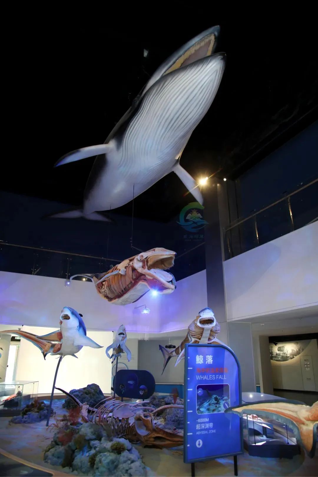 站在巨大的“鯨落”模型下,抬頭仰望著這場震撼視覺和思緒的深藍盛宴,這是鯨魚最后一次用力擁抱大海,也是獻給大海最溫柔的回禮。