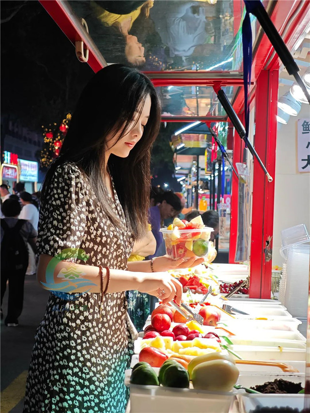 逛吃一圈后,來一份鮮切水果,色彩斑斕的水果上淋滿了醇厚酸奶,清新爽口,酸甜交織,瞬間驅(qū)散油膩,喚醒疲憊的味蕾,繼續(xù)逛吃!