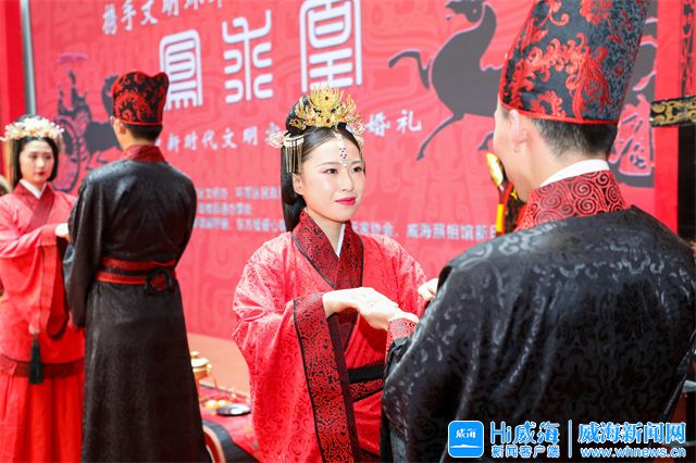 ? 8月8日上午,在環(huán)翠區(qū)天和美術(shù)館,9對(duì)新人共同參加的一場(chǎng)中式集體婚禮,讓更多人感受到中式婚禮背后承載著的中華文化底蘊(yùn)。隨著悠揚(yáng)的樂(lè)曲奏響,在臺(tái)下觀眾的見(jiàn)證下,身著傳統(tǒng)婚服的新人,行洗塵禮、合巹禮、佩授禮、執(zhí)手禮等,完成了儀式感十足的婚慶儀式。新娘張潔表示:“穿上中式華服,我覺(jué)得儀式感一下子就來(lái)了。中式婚禮讓我感受到我們國(guó)家厚重的歷史與文化,有一種深深的自豪感!”新人羅霖和李京也參加了集體婚禮,在羅霖看來(lái),中式婚禮是特別的婚慶形式,這個(gè)儀式浪漫且莊重,作為年輕人,應(yīng)該去深入了解和傳承中華優(yōu)秀傳統(tǒng)文化。