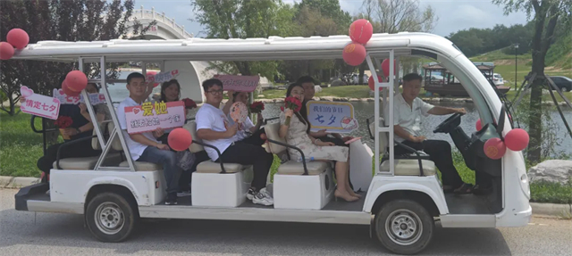 8月10日,在文登區(qū)大溪谷婚姻登記巡回點(diǎn),一場(chǎng)“海誓山盟·緣定文登”集體頒證儀式,成為10對(duì)新人難忘的七夕節(jié)“禮物”。現(xiàn)場(chǎng)設(shè)置了“珠聯(lián)璧合”“金玉良緣”“琴瑟和鳴”板塊,“手繪團(tuán)扇”“制作巧果”“你比劃我猜”等非遺及趣味性游戲,吸引著大家參與,氣氛浪漫、活潑。隨后,大家乘坐巡游花車,打卡了大溪谷內(nèi)的鵲橋、月老橋、情侶長(zhǎng)廊等。