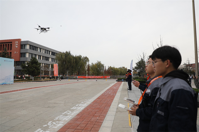 “現在為大家展示的是我校無人機動態飛行表演。”在無人機技能展示區,自旋、順時針大鐘擺、拉煙對沖等演示贏得了在場觀眾陣陣掌聲。在一系列展示過程中,威海技師學院、威海市職業中等專業學校的學生們憑借卓越的技能,精準操控著每一架無人機,確保了每一項展示的圓滿成功。