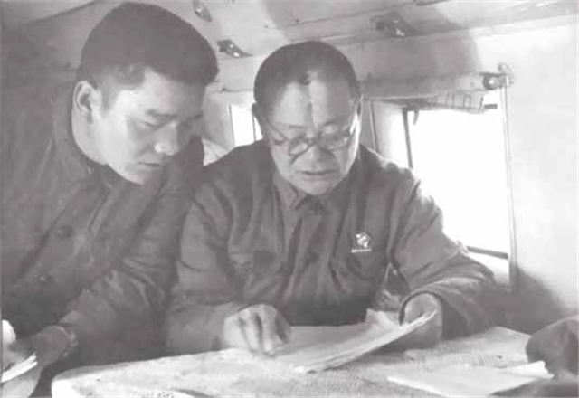 鐘光國與時任秘書屈全繩在研究軍事工作