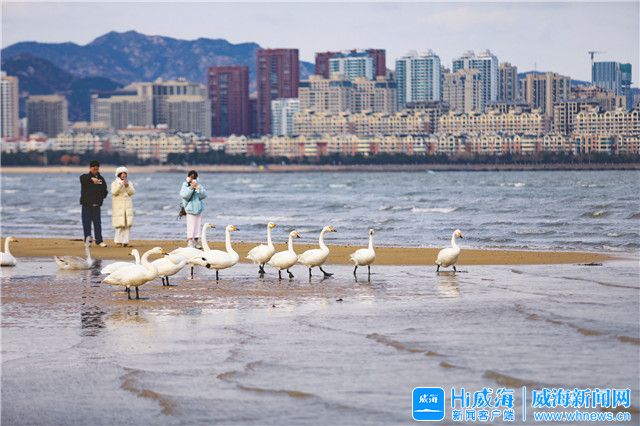 九龍灣大天鵝吸引市民、游客打卡。Hi威海客戶端記者 朱春曉/攝