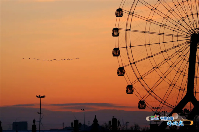 遠處,一輪旭日正從湖面上緩緩升起,從玫瑰色的天際到胭脂紅的朝霞,再到溫柔也燦爛的金色天地,追逐著晨光,看摩天輪、棧橋的光影交錯,看一行天鵝越過云層的痕跡,看波光粼粼的“橘子湖”上,好一出日出浪漫的畫面,此時此刻,心動滿分。