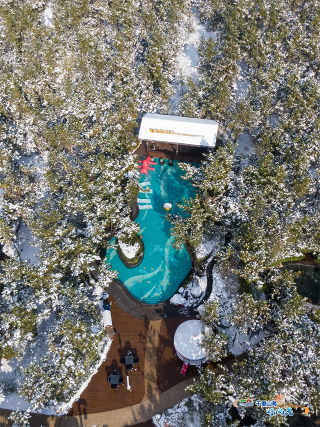 雪后初霽,大大小小的溫泉池于林間若隱若現,周圍郁郁蔥蔥的綠意被鋪上了一層雪白的點綴,似仍有飄飄揚揚的落雪融入蒸騰的熱氣,若此時擇一湯池坐下,便有了“泉在雪中,人在泉中”的別樣意趣。