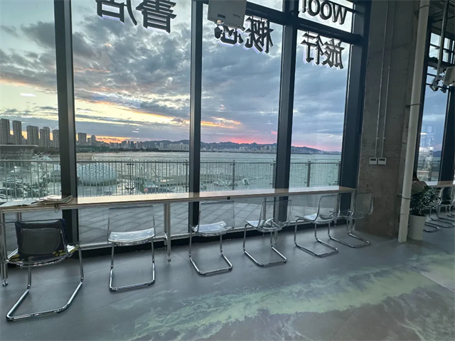 ? 威海·環(huán)海路·崖尚位于威海市千里山海自駕旅游公路的環(huán)海路上,也處于半月灣風(fēng)景區(qū)內(nèi),因坐落于“懸崖之上”而得名,由一處閑置多年的老建筑改造而成,周?chē)屑蠛!已隆⑸搅譃橐惑w的自然景觀。
