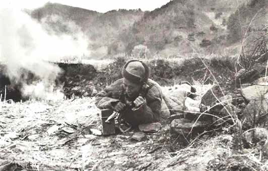 ????????抗美援朝戰(zhàn)爭中,冒著敵人炮火傳遞戰(zhàn)報(bào)的志愿軍電話員