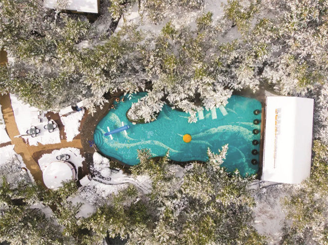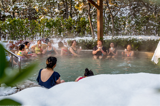 冬日泡溫泉是一番別樣的享受,沒有了夏日灼熱的陽光,身體沒過湯泉的那刻,只有仿若冰塊滑入熱水的舒暢。冷熱交替刺激下,一瞬間仿佛全身的肌肉都放松下來。若是遇到一場小雪,隨落隨化、融入湯泉,只剩一層薄薄的白雪覆在枝杈、蓋在地磚上,邊泡溫泉邊賞景,于身體、于靈魂都是一場酣暢淋漓的釋放。
